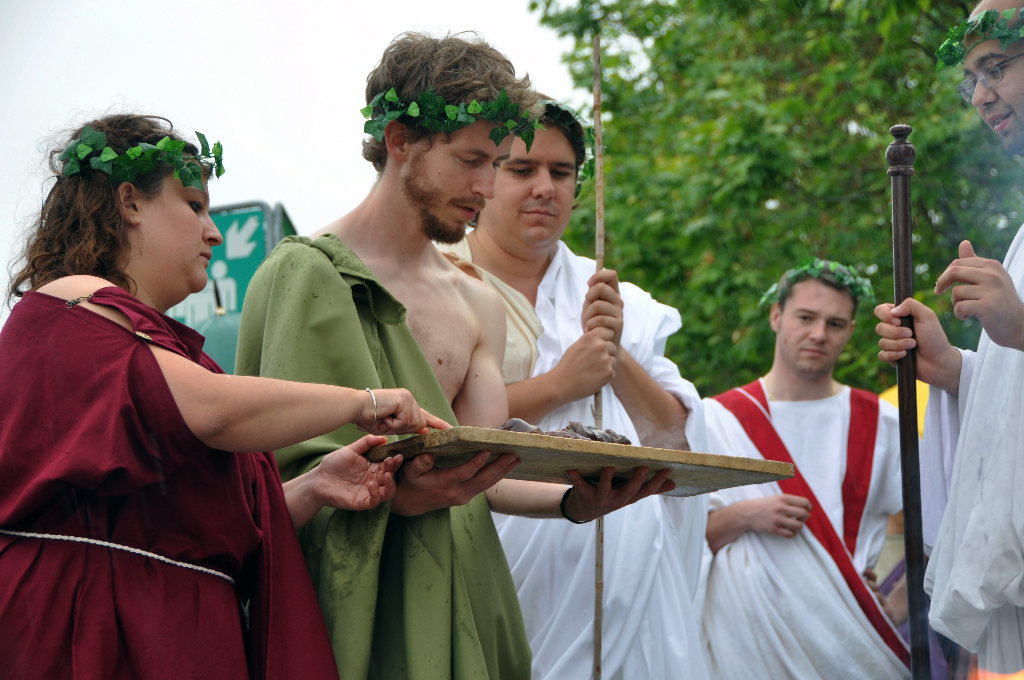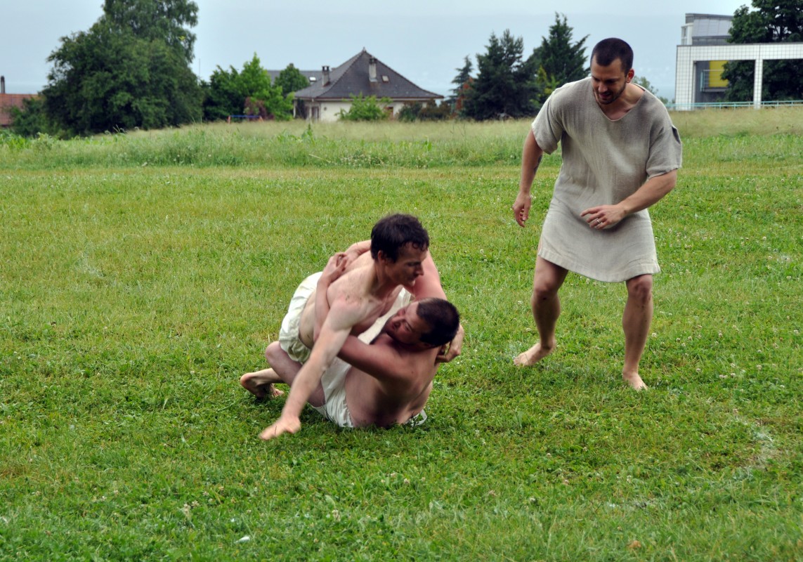 Le dimanche, les étudiants en archéologie et leurs professeurs ont organisé une reconstitution de joutes antiques.